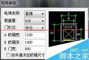 4、我們可以通過設置參數進行繪制,但更快捷的是我們一般會將“按井道決定轎廂尺寸”勾選,可以更方便的添加電梯。我們勾選之。
