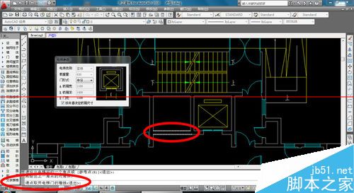 6、按照左下角的提示,選取電梯門的墻線,即電梯門所在的位置。