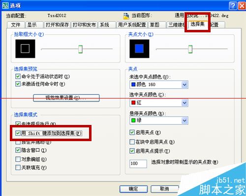4、在彈出的對話框中,找到“選擇集”,并點擊,看到有一個“用shift鍵添加添加到選擇集”是打勾的。