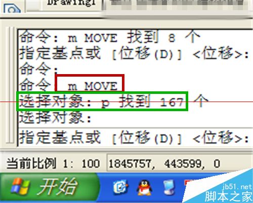 2、輸入“m”快捷鍵,或“move”完整命令,回車。