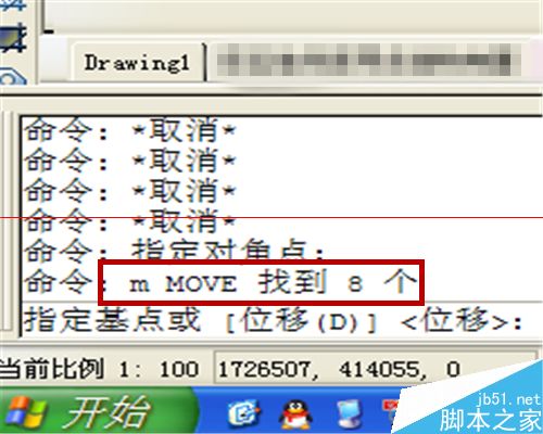 3、根據提示,移動到我們需要的位置,有時因為開啟捕捉,造成了移動到錯誤的位置,如圖,再重新選擇較為困難,撤銷命令,重新操作會浪費時間,那么我們再輸入剛才的命令“m”。
