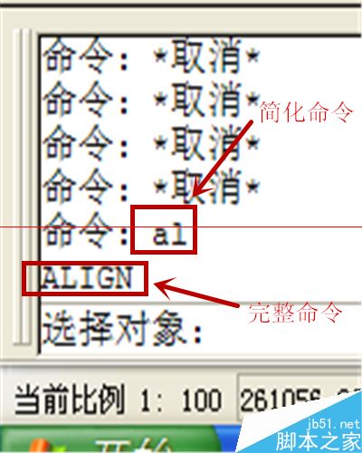 3、輸入“AL”快捷鍵,或“ALIGN”的完整命令,回車。