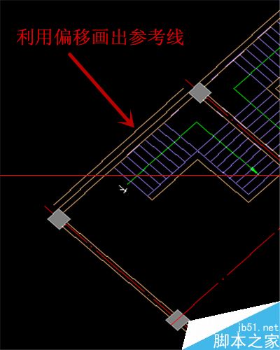 2、首先選擇參照圖形的一條線,進行“偏移”,偏移量為成圖后兩圖形之間的距離。