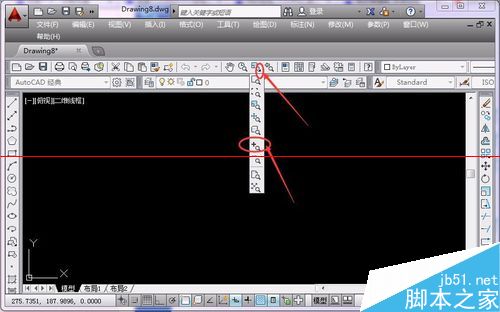 8、在工具欄中,有些圖標右下角帶一個小三角,擊中后打開下拉圖標,此時將光標點到哪個圖標放開后,在工具欄中顯示的就是哪個圖標