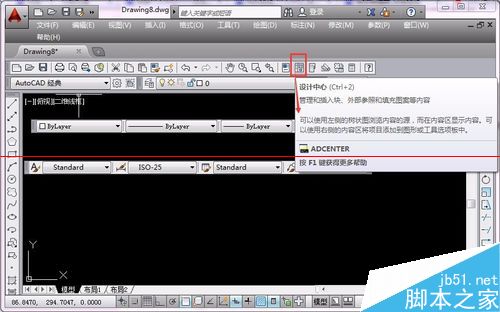 5、將光標移動到任意一個工具欄中的圖標時,一會兒就會在這個圖標的一側顯示出相應的工具提示及說明還有命令名,此時點擊圖標就可以啟動相應命令