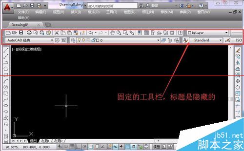 7、我們剛才為介紹方便,工具欄一部分處于浮動繪圖區,現在都放在固定區,工具欄的標題也隨之隱藏了