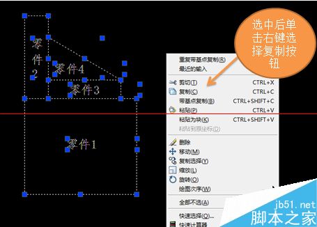 2、打開需要用的CAD圖紙,選中圖形部分,并單擊右鍵選擇復制。