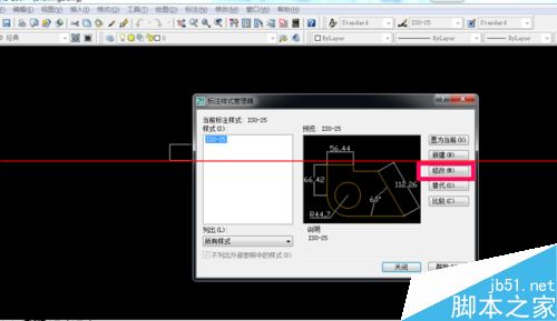 6、然后彈出標注樣式界面,鼠標左鍵點擊其中的修改按鈕。