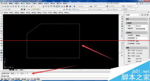 四:這時候就會發(fā)現(xiàn)我們的十字光標變?yōu)榱艘粋€矩形的選擇框,在左下角的狀態(tài)欄也會提示我們”選擇對象“