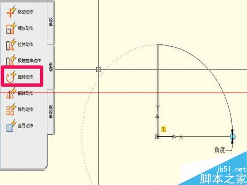 12、完成后在點擊動作,在動作對話框中,選擇旋轉動作,如圖所示。