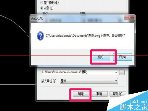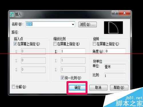 8、然后雙擊塊,在彈出的對話框中點確定,如圖所示。