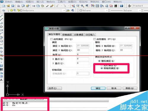 1、首先打開軟件,CAD。在打開等軸平面,等軸測撲捉在命令行輸入ds。