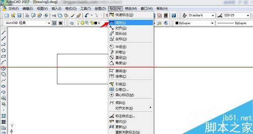 1、首先我們要下載安裝cad2007版本,然后打開,繪圖一個矩形,然后通過標(biāo)注里的直線標(biāo)注對矩形進(jìn)行標(biāo)注,如下圖所示。我們看到標(biāo)注的字體和箭頭很小,已經(jīng)看不到了。