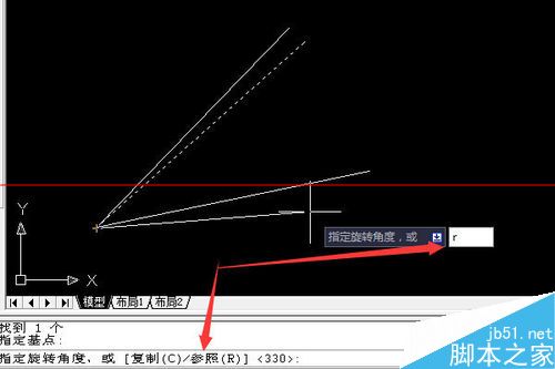 8、指定新角度。給選中的這條指定新的角度,也就是選擇參照。