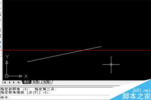 1、打開cad,做兩條相交輔助線。注意:參照旋轉的前提是二者要有交點,才能讓前者參照后者來旋轉。