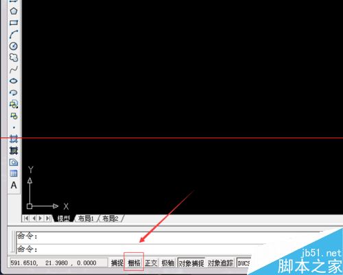 1、單擊CAD屏幕下方的【刪格】按鈕。