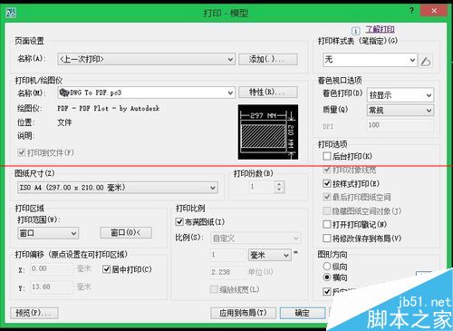 4、一般是選擇打印機(jī)類型、紙張大小、比例、輸出 的樣式。選擇合適的紙張,選擇窗口打印。