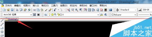 4、打開電腦上自己已經安裝好的CAD,這里小編以CAD2007為例,你會看到窗口欄,變成標簽的形式。