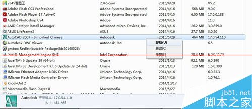14、鑒于這里主要寫的是注冊表的刪除,所以對于CAD軟件本身的卸載問題就一筆帶過了,不管你是在系統控制版面的程序刪除里操作,或者利用軟件管家刪除,或者利用 windows installer clean up 軟件都行。