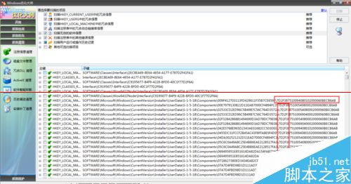 3、全部帶有7D2F的都搜索出來了,注意辨別,比如說下圖前面那幾個7D2F位于字符串中間的就不是了,不要勿刪。接著要做的是,把/7D2F...開頭的鍵值進行刪除。小編也曾天真的以為直接用該軟件全選,然后刪除就成了,結果反復刪除幾小時后才發現,對于很多注冊信息,大師也是沒有刪除權限的。也就是說,我們依舊得進入注冊表,進行手動一個個刪除。