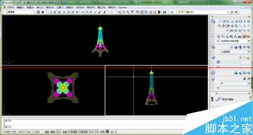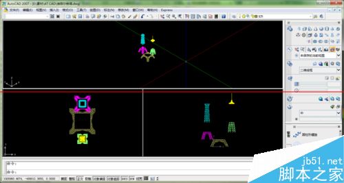 2、在CAD中通過三維建模繪制模型,因為AutoCAD經典模式下進行建模如果不注意視口的合理切換則會導致圖形在導入到SAP2000中后為二維圖形,并不是三維結構,下面以我之前做過的一個圖形為例