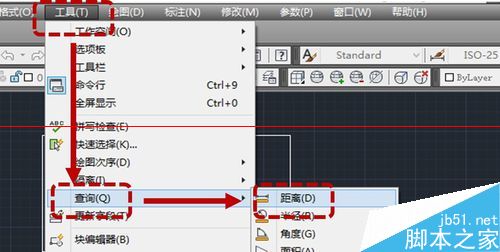2、在菜單欄中依次選擇“工具——查詢——距離”;