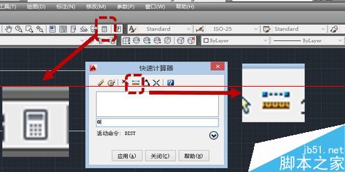 3、單擊上方工具欄圖標中的“計算器”圖標,在彈出的計算器中點擊“兩點之間的距離”圖標“(如圖所示)。