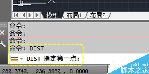 1、在最下方的命令行直接輸入“DIST”;