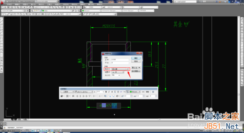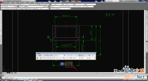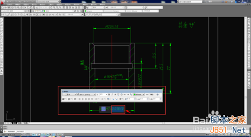 4、雙擊該尺寸,彈出文字格式框,然后再選中矩形框中的尺寸;