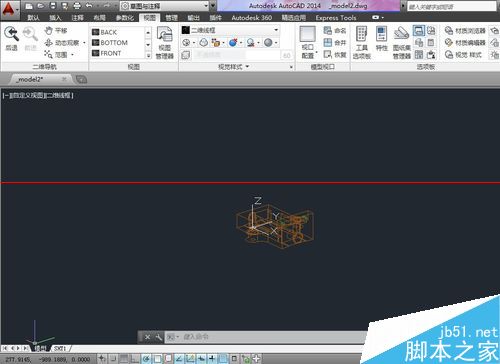 3、單擊左下角的“模型”,在該模式下才能修改圖紙,但你會發(fā)現(xiàn)它不是ug里的二維圖而是三維圖,有時會出現(xiàn)亂線的情況
