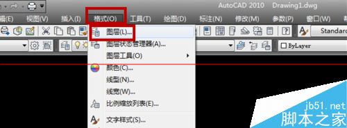 2、或者點擊界面欄中的“格式”---“圖層”,兩種方法都會彈出“圖層特性管理器”的小對話框