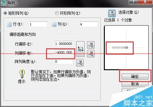 5、在當前的對話框內有預覽可以看到預覽的方向,如果你想要調相反的方向,改變一下陣列的數據即可,調整完之后點擊確定,即可,如圖所示