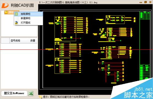4、拾取柜名稱方法:光標變成紅色十字,在圖紙里的柜名稱上,按住鼠標左鍵拖動框選文字后松開,點擊鼠標右鍵,柜名稱就拾取好了。