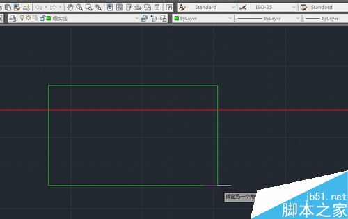 5、切換圖層,選擇白色粗實(shí)現(xiàn)的線型,輸入l(直線命令),選定左下角點(diǎn),按住shift+2,進(jìn)入相對坐標(biāo),輸入(25,5),確定另一點(diǎn)。