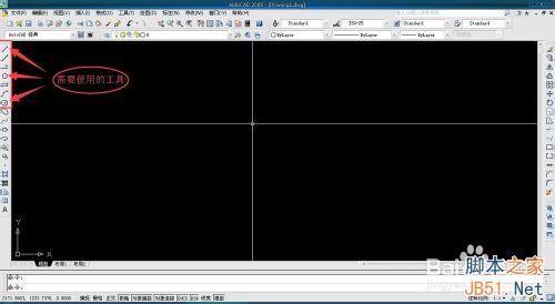 打開AutoCAD軟件,我們看到如圖所示界面,左邊欄有很多的工具,大家可能會奇怪我的XY十字光標和大家的不一樣,這個其實沒有多少關系,主要是根據使用者個人習慣來調節的。