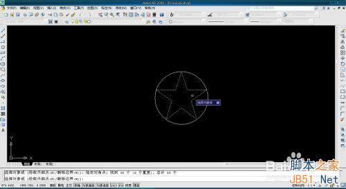 這一步是對五角星的內部多余線的刪除,這個需要使用到修剪工具,如圖,我們選擇修剪工具,選中整個五角星不包括外圓,鼠標右鍵確認。