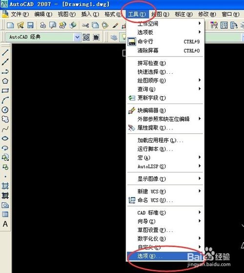 在菜單欄上,“工具”——“選項(xiàng)”。