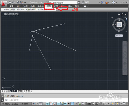 首先打開CAD軟件,點擊菜單欄上的“視圖”按鈕,即會在下方彈出選項“用戶界面”
