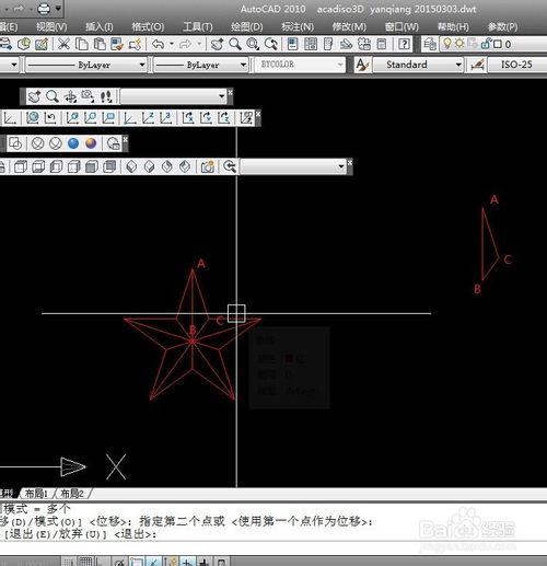 利用三維鏡像命令繪制,五角星的一角,然后用布爾命令合并,兩個小角