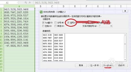 第四步:數據分列。選中文本所在列。選擇“數據”——“分列”———“下一步”——勾選“逗號”——“下一步”——“完成”。