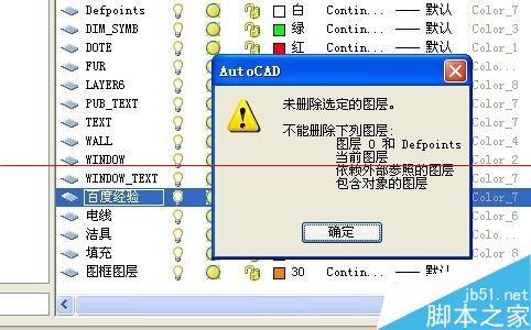 2、如果我們按照常規(guī)的方法刪除圖層,你會看到下面提示框。即使你使用這個方法,也沒有辦法刪除,怎么樣刪除這些頑固圖層。