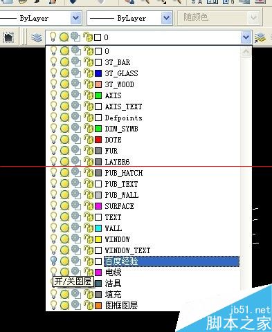 1、如圖所示我們要將CAD中“百度經(jīng)驗”這個圖層刪除。