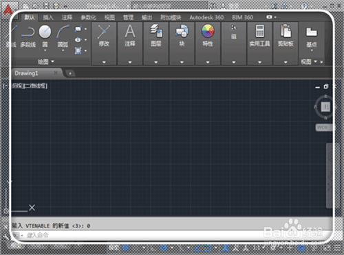 打開CAD,復(fù)制引號內(nèi)內(nèi)容“VTENABLE",粘貼在命令欄,點(diǎn)擊回車。