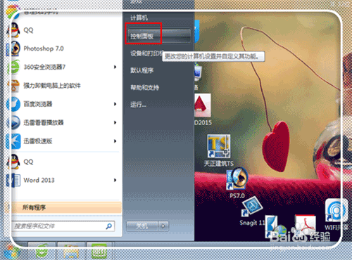 這里因?yàn)镃AD2015聯(lián)網(wǎng)問題,會花費(fèi)一定時(shí)間,首先禁掉。點(diǎn)擊“開始”——“控制面板”。