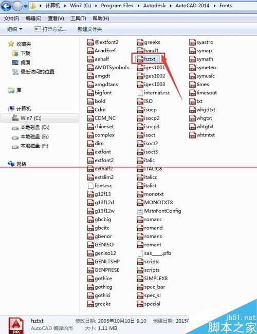 6、再安裝到CAD的字體FONTS文件夾中,我以hztxt為例,下載后復制,然后粘貼到FONTS文件夾中,其他的缺少的字體也一樣,下載后安裝到文件夾就可以,如果字體不缺少再打開時就不會提示