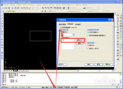 4、移動鼠標,撲捉剛設(shè)定的角度