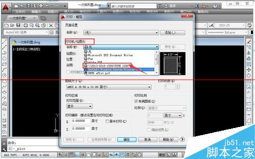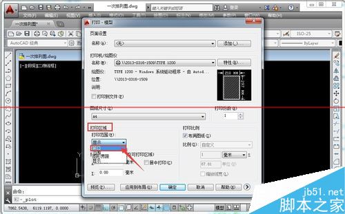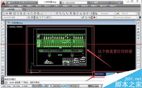 7、對打印圖形范圍的選擇,我們可以在圖紙中選擇窗口,用鼠標選擇出范圍來。