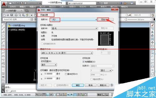 4、彈出打印模型設置頁面,首先要對打印的頁面進行設置,因為是初入CAD咱們這個里可以直接選無,或者上一次打印,對頁面設置有專門的一個經驗,可以參考。
