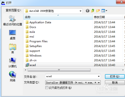 5、雙擊acad.msi或setup.exe就可以正常安裝了,選擇安裝位置時最好在Program Files (x86)的文件夾下,其他與在32位系統下同樣安裝即可。