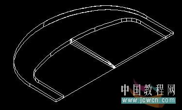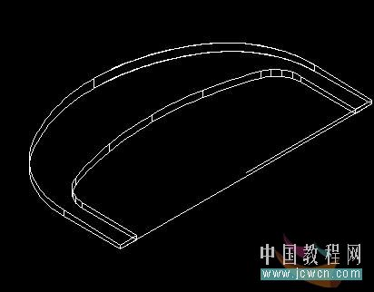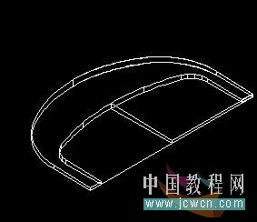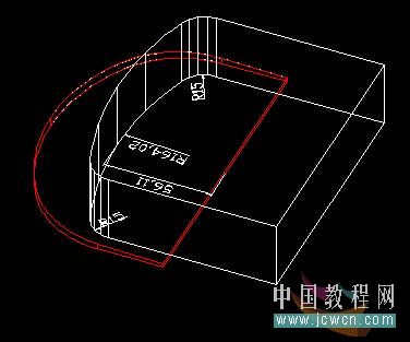 7:回到俯視圖,做出如圖的面域,在西南等軸測視圖中拉伸成實體,用紅色實體減去白色實體: